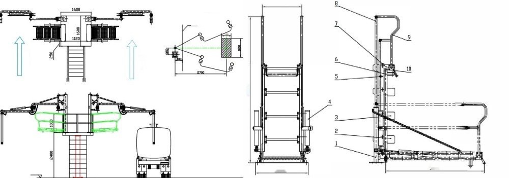 लोडिंग प्लेटफॉर्म के लिए फोल्डिंग सीढ़ियों का उपयोग लोडिंग रैक से टैंक कारों या रेल टैंकरों तक की दूरी को पाटने के लिए किया जाता है। उनका उपयोग अन्य समान अनुप्रयोगों के लिए भी किया जा सकता है। सीढ़ी में कार्बन स्टील का निर्माण होता है, जो हैंड्रिल, एंटी-स्किड स्टेप्स और स्प्रिंग सिलेंडर बैलेंसिंग के साथ पूरा होता है। संपर्क ब्रैकेट सुरक्षा के लिए तेल प्रतिरोधी रबर बंपर के साथ कवर किया गया है। असेंबल न होने पर छोटे स्थान पर कब्जा करने के लिए इसके फ्रेम को सपाट मोड़ा जा सकता है।